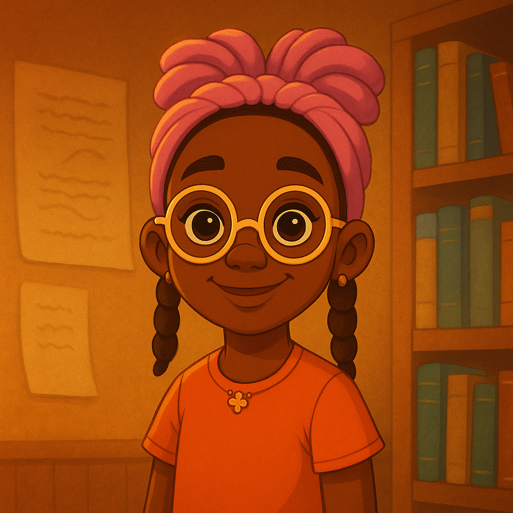 À la fois courageuse, aventurière du cœur et bienveillante. Née au pied du Baobab magique. Elle incarne la voix de l’espoir et de la transmission. Elle aime écouter les anciens, danser, et créer de la musique avec sa kora enchantée.